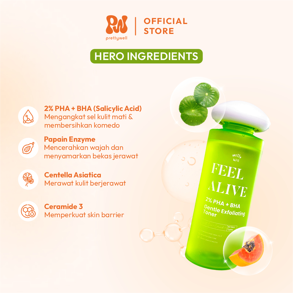 Prettywell Official Store | Prettywell Brightening Starterpack [Oil Serum + Moisturizer 50 ML Tube + Exfoliating Toner ]
