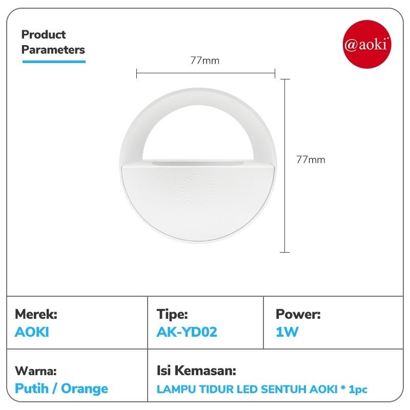 Lampu Tidur Aoki AK-YD02 1 watt / Lampu Tidur Led Sentuh / Lampu Dinding Kamar Tidur / Lampu Kamar / Lampu LED Hemat