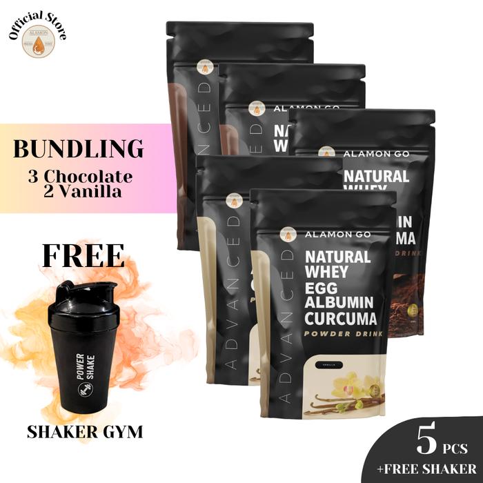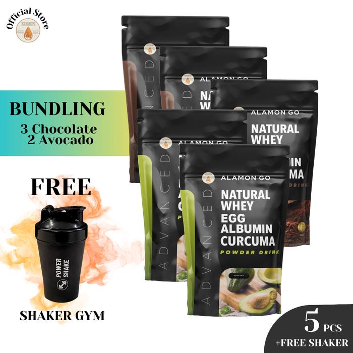 Bundling 5 pcs + SHAKER / Alamon GO / 30x Serving / Kombinasi Whey Egg Chocolate
