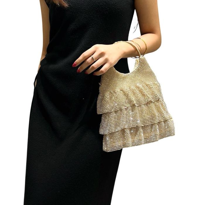 TAS PESTA ROK SERUT 3 SUSUN TENTENG FULL DIAMOND TAS KONDANGAN RUMBAI UNIK WANITA
