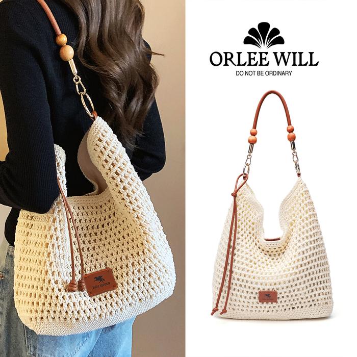 ORLEE WILL Tas Jinjing Momen Kasual Musim Panas Tas Anyaman Pantai Angin Malas Tas Selempang Bahu
