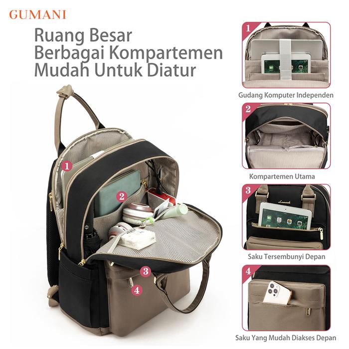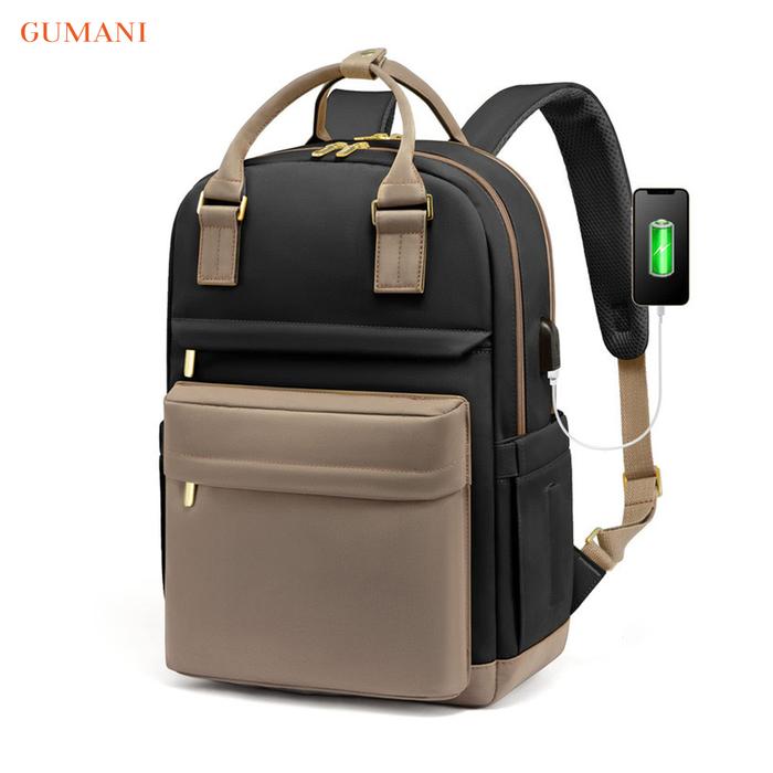 GUMANI Wanita fesyen tas bahu besar kapasitas USB laptop tas ransel tas perjalanan tangan tas buku