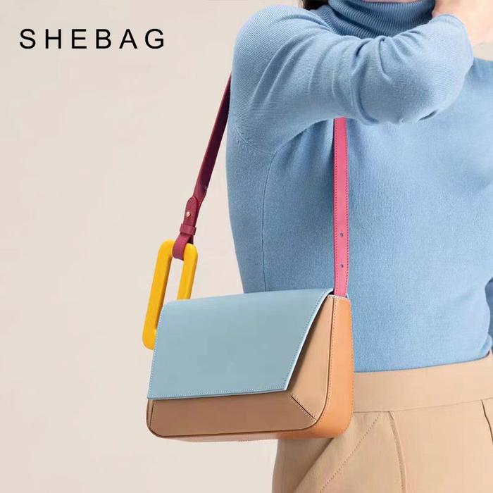 SHEBAG Wanita Kekinian Warna Kontras Tas Sling Bag Wanita Tas Trendi Baru Sambungan Geometris Gesper