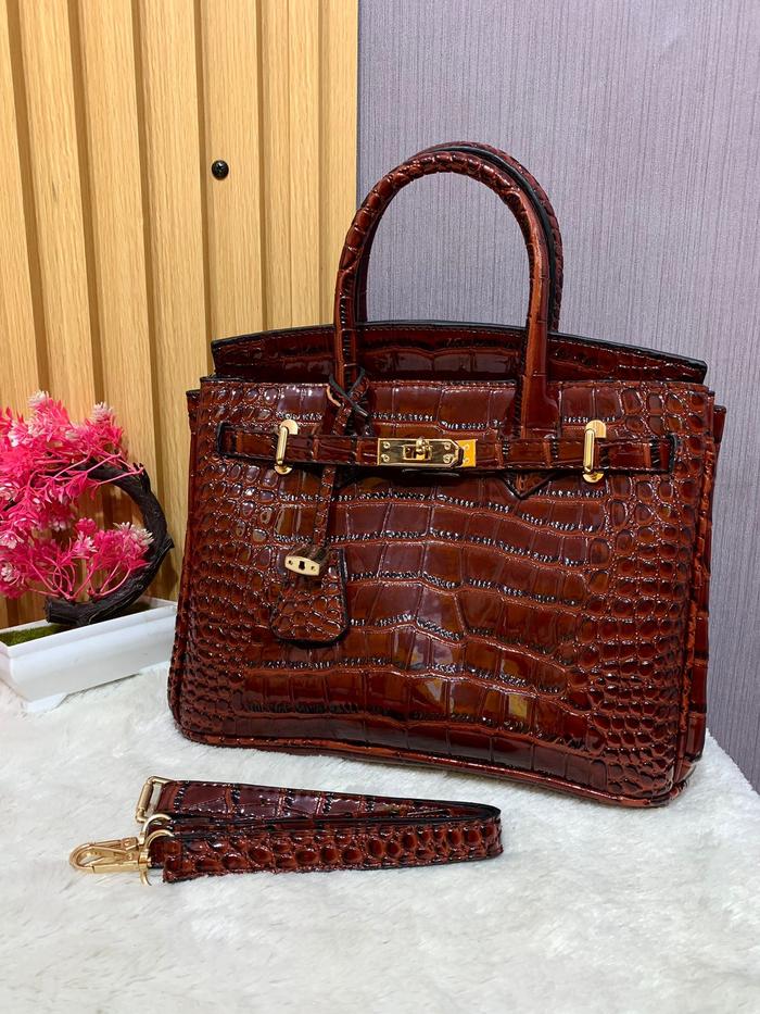 CLIONA tastangan Bk 30 Croco L tasslempang taswanita tasterkini Hitam Kulit Pink