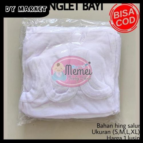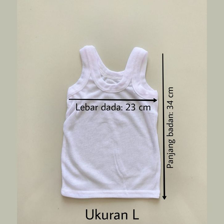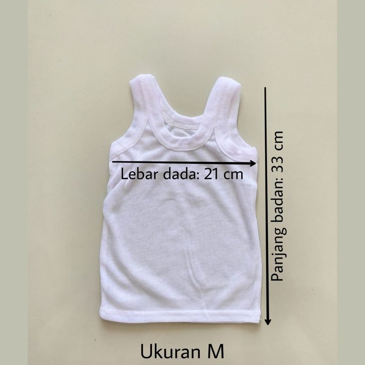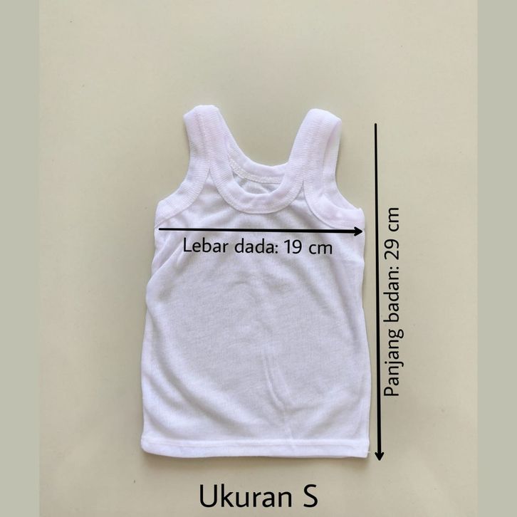 1 LUSIN (12 pcs) Singlet bayi PUTIH ukuran S / M / L / XL grosir