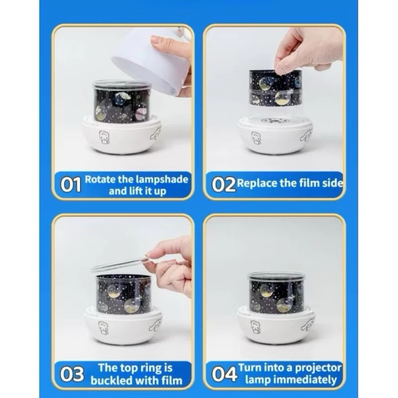 Lampu Tidur Proyektor Rotasi KUROMI+3 Warna +12 Set Pola / Langit Malam Berbintang Kamar Aesthetic Tidur Lucu