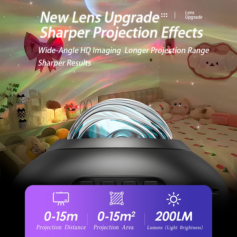 【Garansi 1 tahun】Proyektor LED Aurora Galaxy Model Terbaru, Speaker Bluetooth 32 Warna dengan Musik & Lampu Malam Bintang