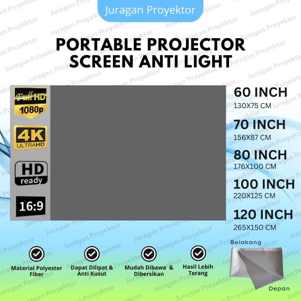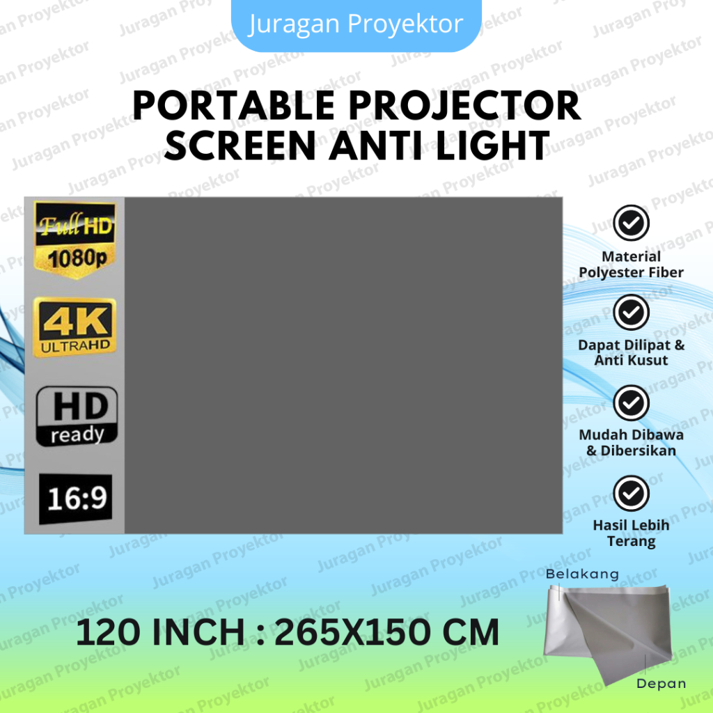 Layar Proyektor Anti Light | Screen Projector Ambient Portable Reflective 60-70- 80-100-120Inch 16:9 | Kain Layar Proyektor Anti Light