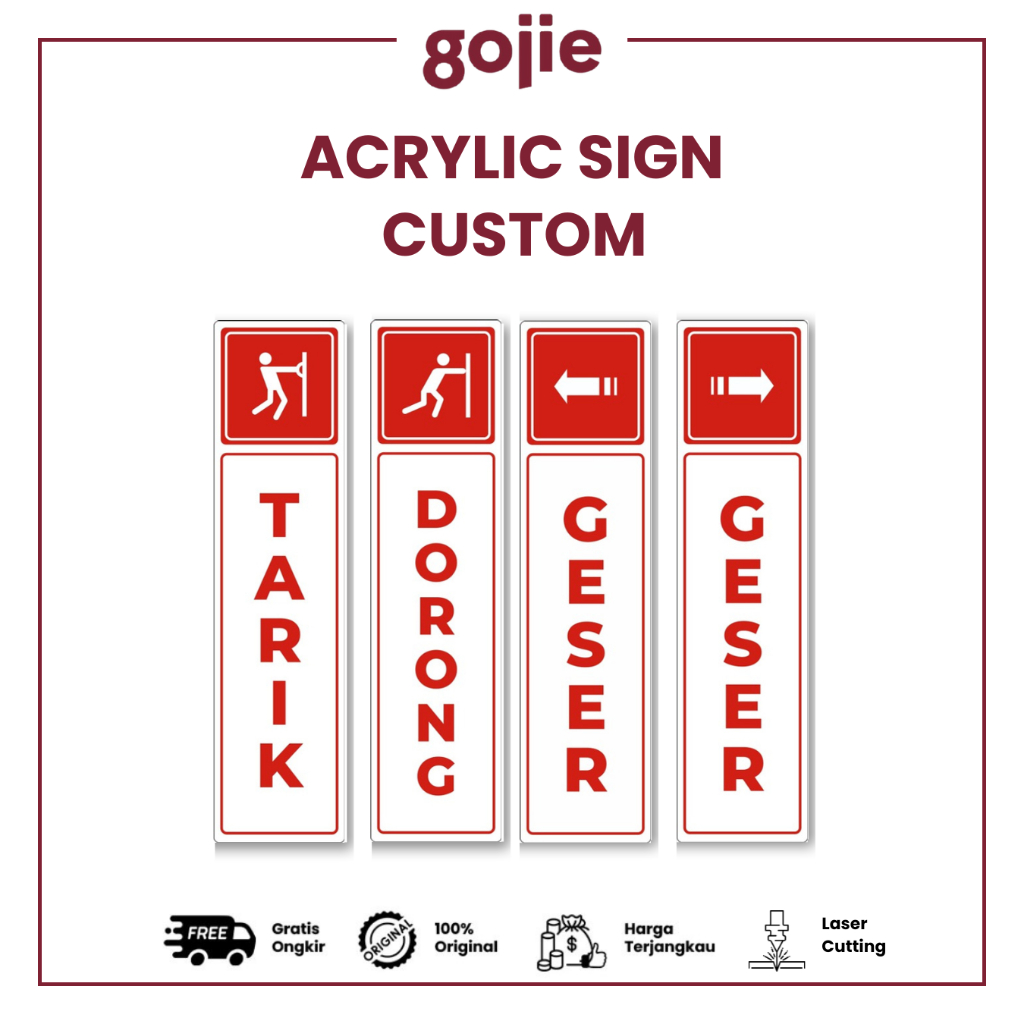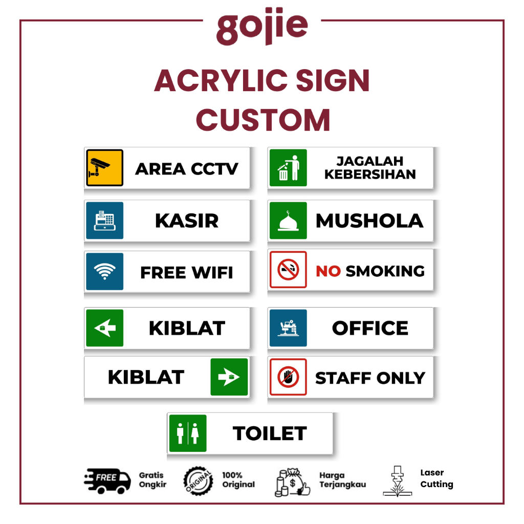CUSTOM TULISAN, Kasir, Area CCTV, Tarik, Dorong, Free Wifi, Geser (Kanan), Geser (Kiri), Jagalah Kebersihan, Kiblat (Kanan)