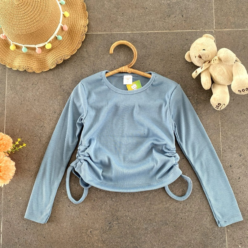Top Shiren Beuzee Junior / Atasan Crop Anak Perempuan Rib Serut Lengan Panjang / Baju Anak Gemoy Usia 7-12 Tahun