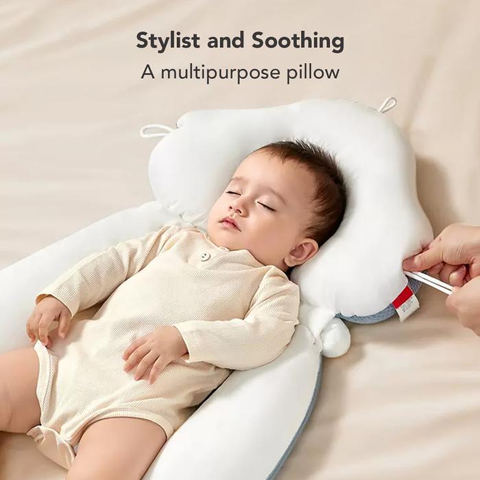 Sakumini Head Shaping Pillow 2in1 Newborn Head Shape Baby Pillow Bantal Kepala Anti Peyang Bayi Anak Katun Tidur - Pink