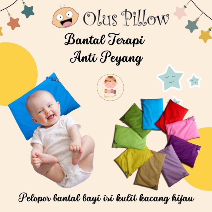 Olus Pillow Bantal Kesehatan Terapi Bayi Anti Peyang Isi Kulit Kacang Hijau - Hijau Tua