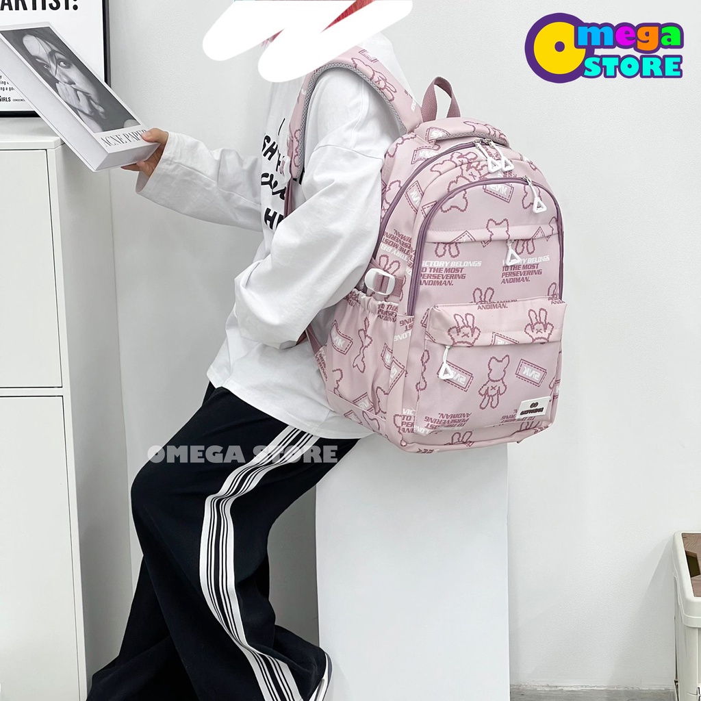Tas Ransel Anak Sekolah Karakter Beruang Polkadot Korea Backpack Laptop-OS293