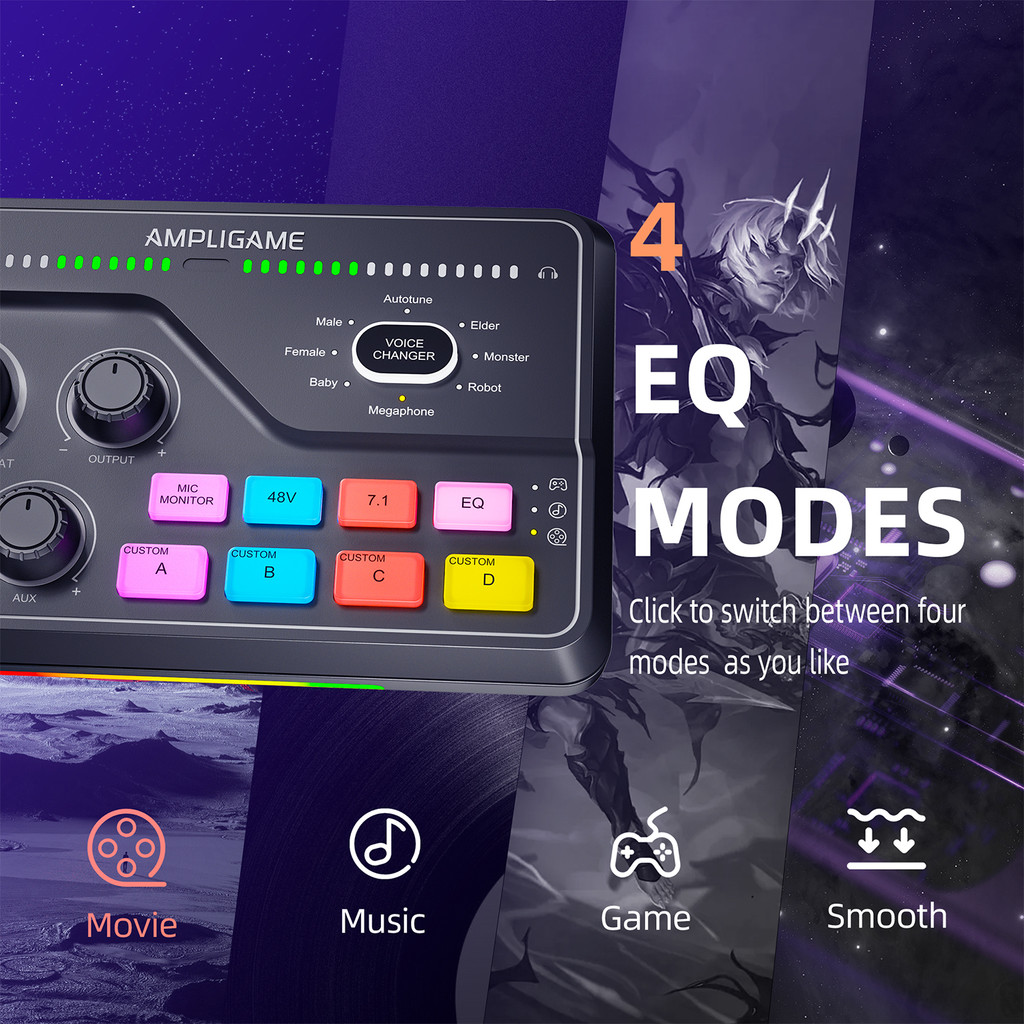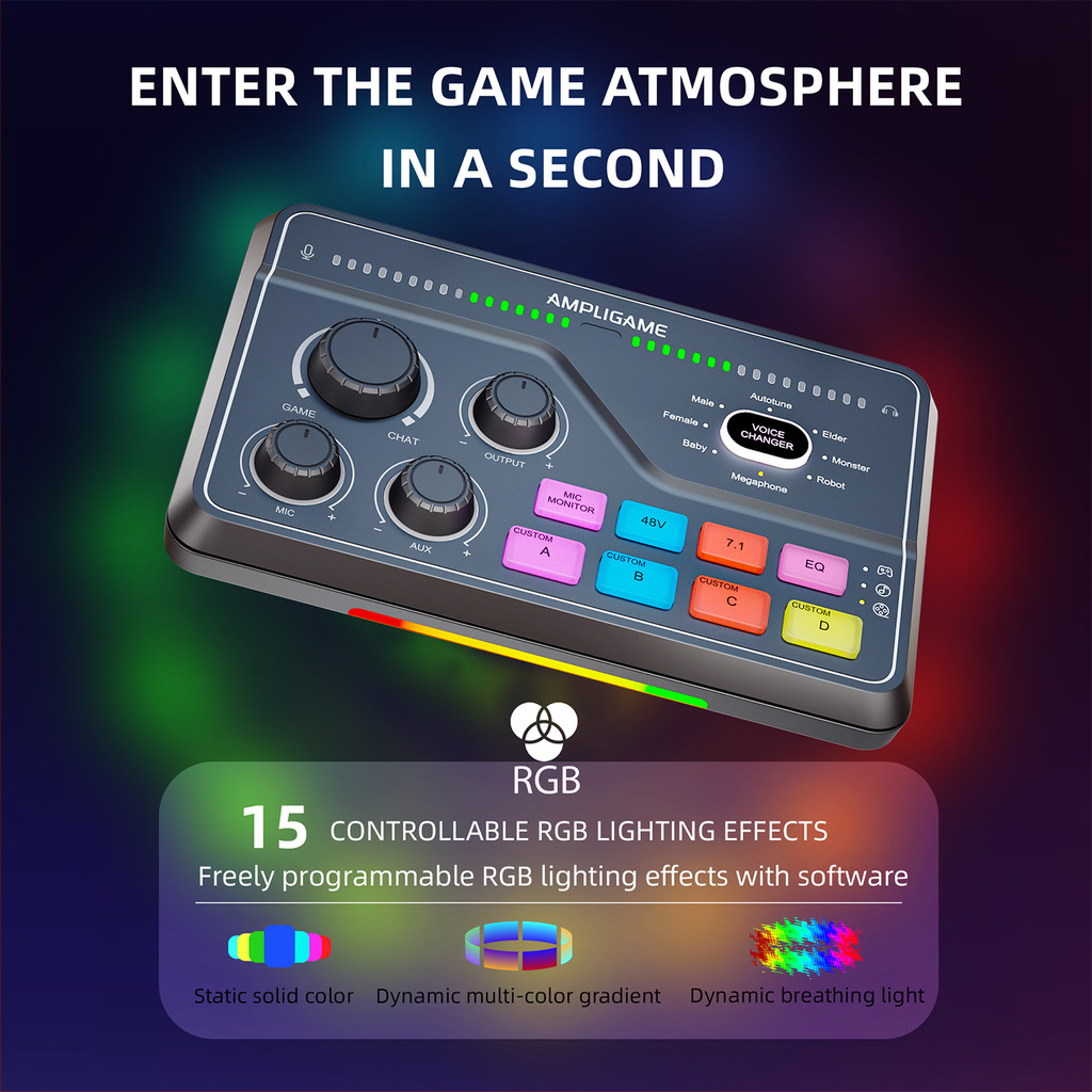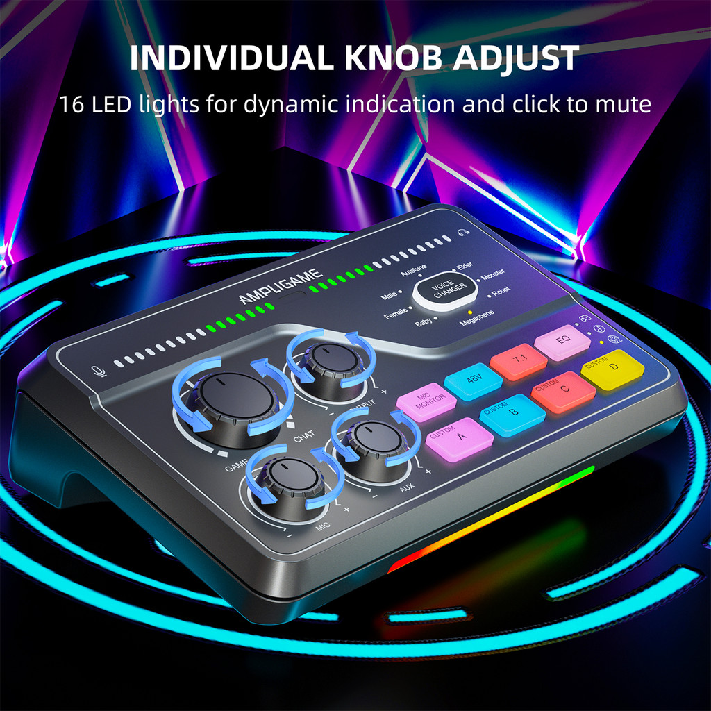 Fifine Sc8 Usb Soundcard Rgb – Xlr Mic, Gaming, Streaming, Voice Changer, 7.1 Surround