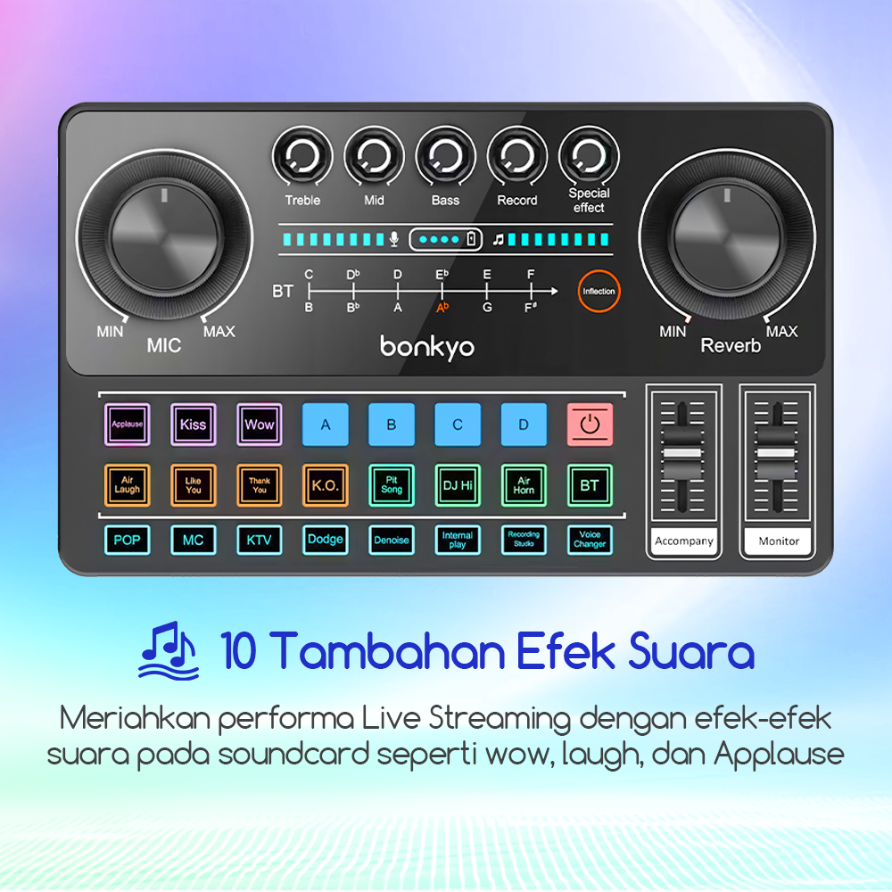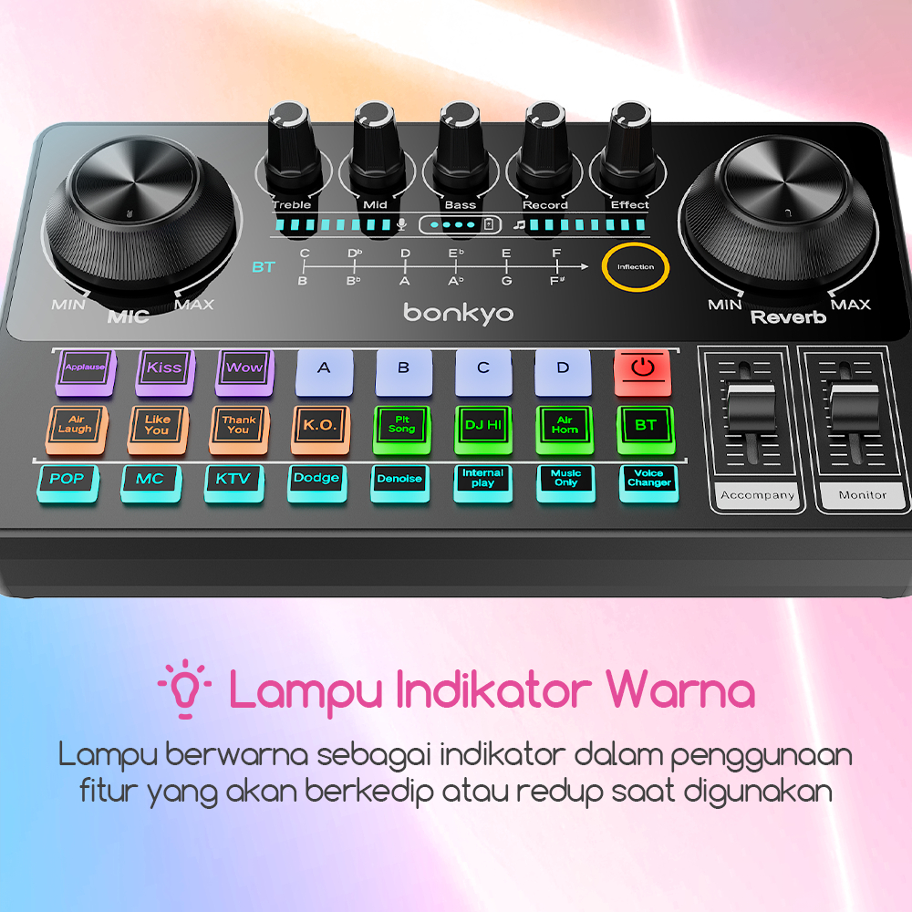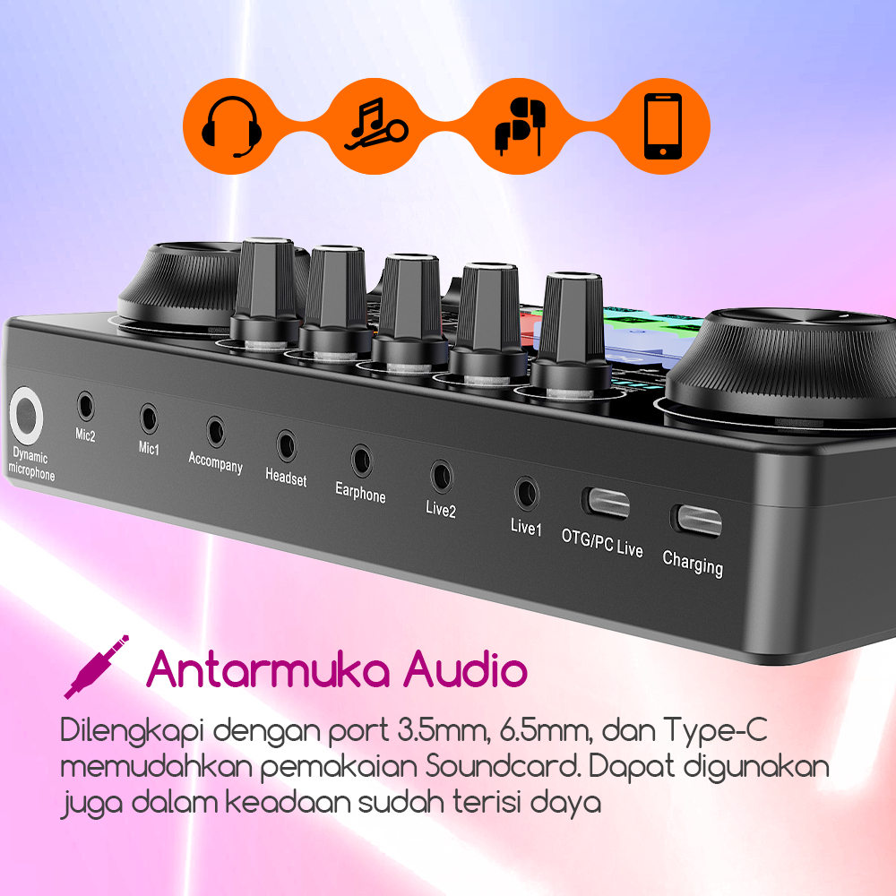 Bonkyo [Nilai Hebat] Sound Card F999Neo + Mikrofon + Lampu Pengisi + Set Kabel Otg 2-In-1 4 Tombol Yang Dapat Disesuaik
