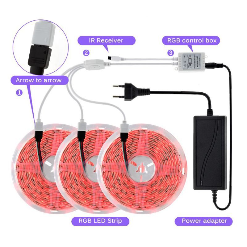 Paket Lampu LED Strip RGB SMD 5050/2835 IP44 – 5m 10m 15m | Dekorasi Kamar Tidur Plafon Aesthetic