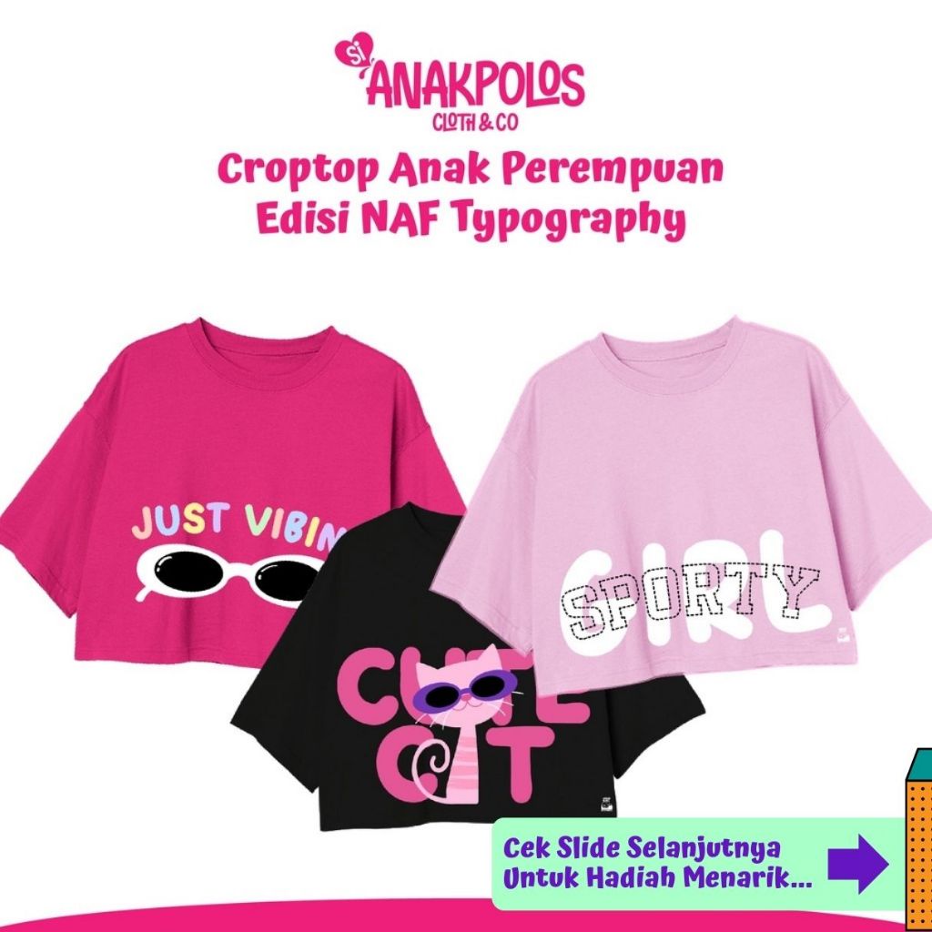 Croptop Basic Anak Perempuan Dan Wanita Dewasa Typography Series Cute Cat Holiday Bahan Katun Combed