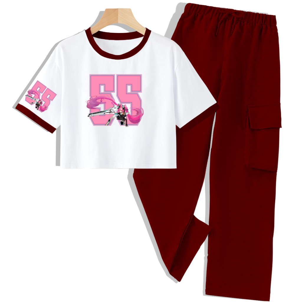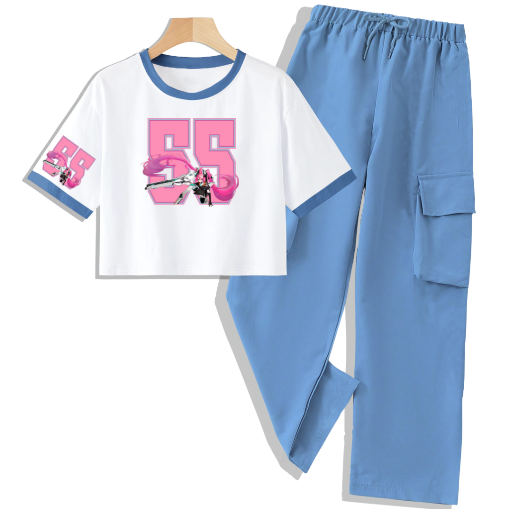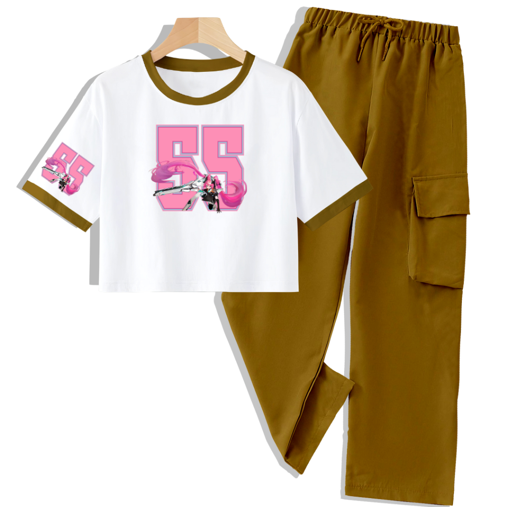 Clstore Setelan Anak Kaos Crop Celana Kargo 5-12 Tahun Layla 55