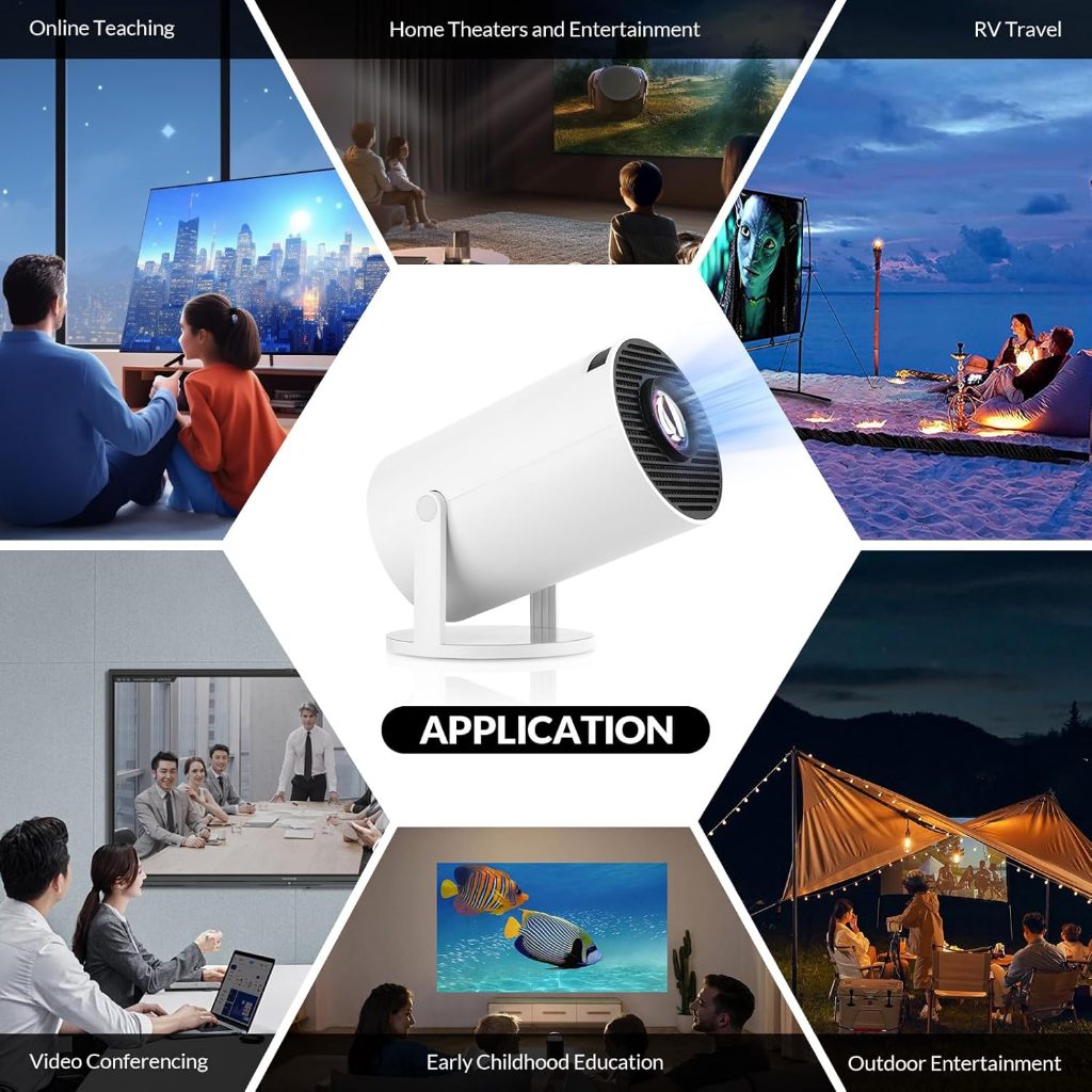T-JERZEN Proyektor Android 11.0 Bluetooth 5.0 Proyektor 2.4+5G Wifi 6 Portabel Minimalis Full HD HY300