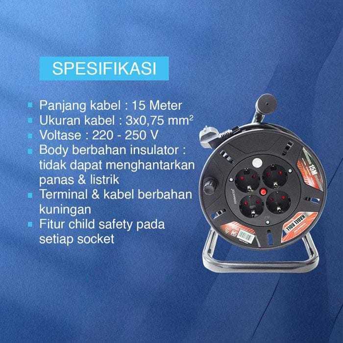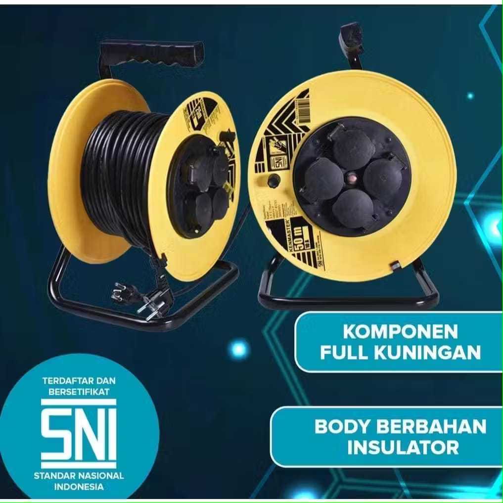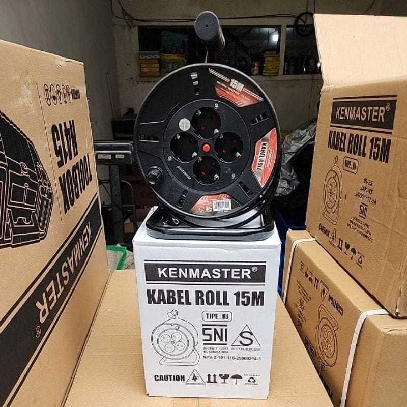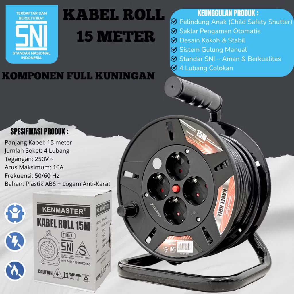 KABEL ROLL KENMASTER 15 Meter 4 LUBANG SNI/ KABEL GULUNGAN 15 M TERMINAL KUNINGAN/ Kabel Rol Colokan Listrik