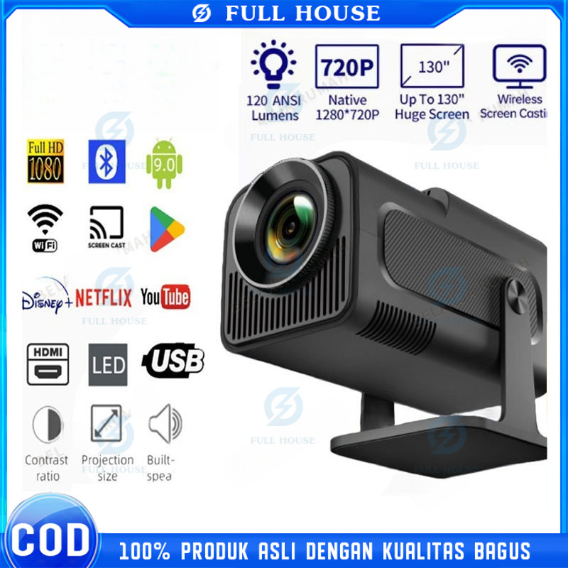 Proyektor HY320 Android 11.0 1080p 10000 Lumens WiFi 6 Bluetooth 5 Smart Proyektor HD 4K HDMI 1080P Native Projector LCD TV Asli