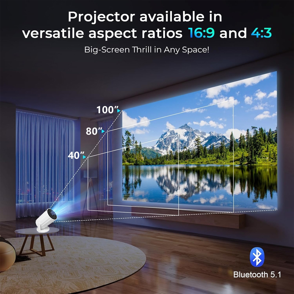 RY006 New Portabel Proyektor Android 11.0 2.4+5G Wifi 6 Bluetooth 5.0 Proyektor