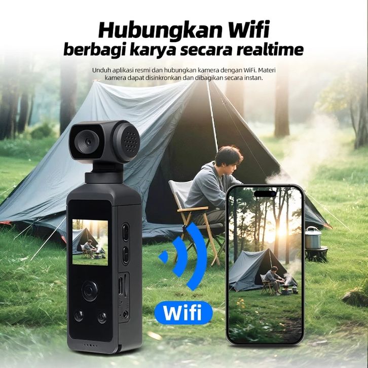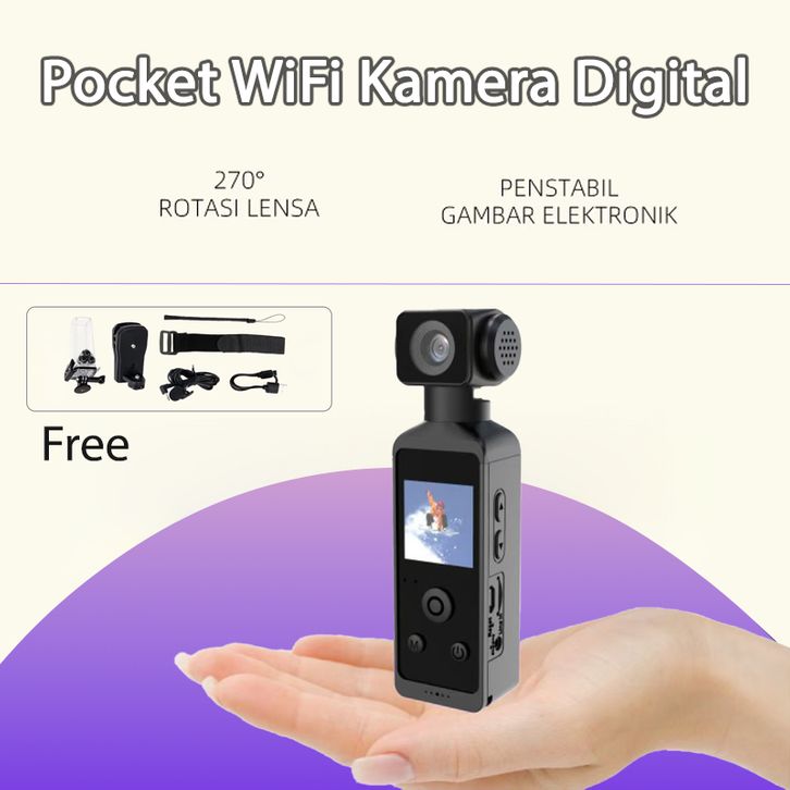 4K Pocket WiFi Kamera Digital Pocket HD Camcorder kamera action Rotasi 270° dengan Housing Tahan Air Action Camera Reka