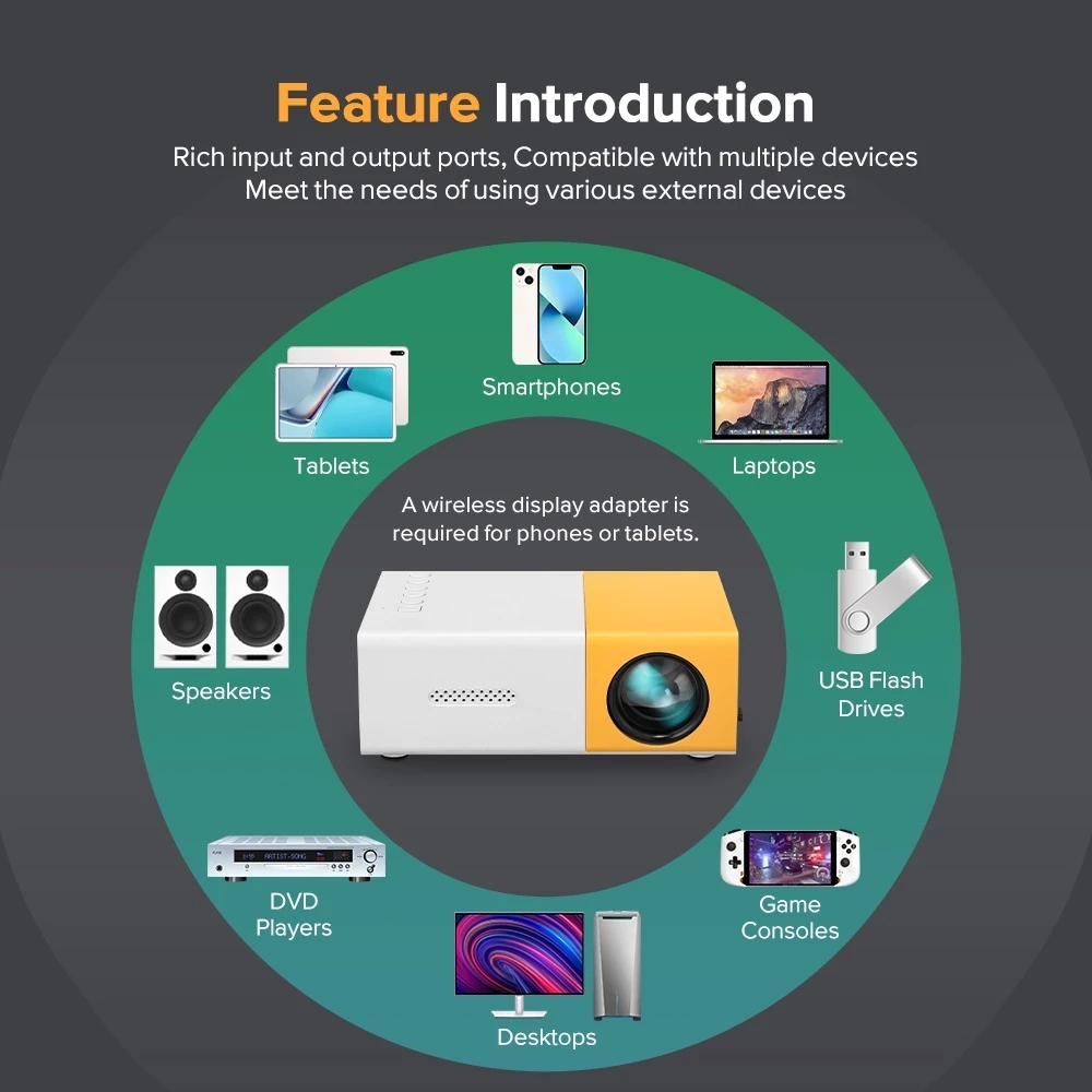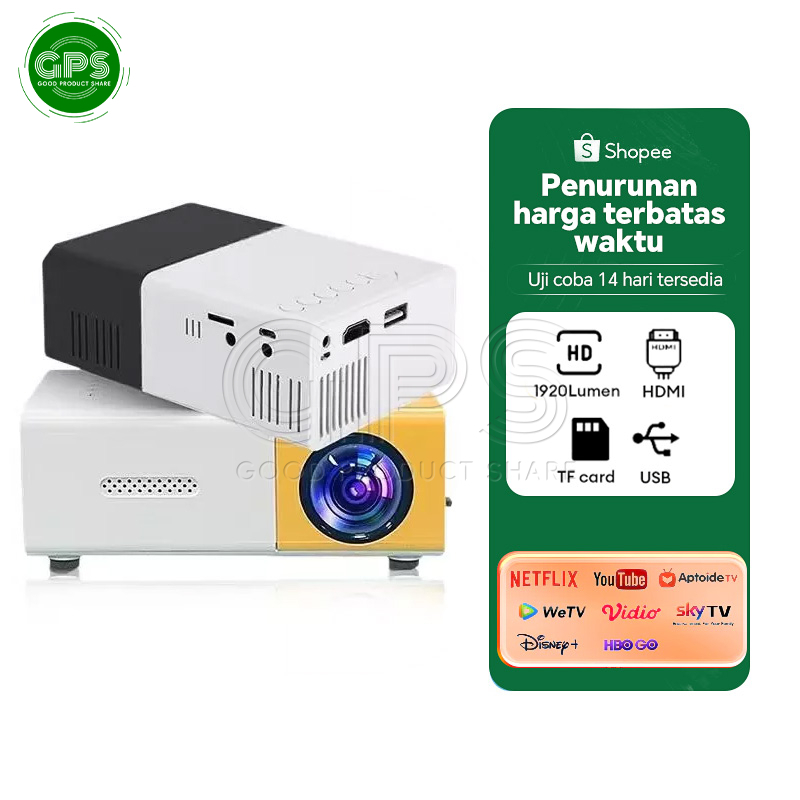 Proyektor Mini Portabel LED Mini Projector Set NEW HP Mini Home Theater HDMI YG300 / YG-300 / YG 300 untuk Home Theater