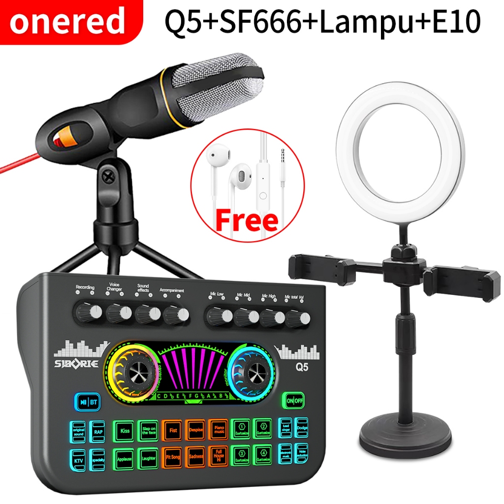 Onered Q5 Soundcard Original Paket Lengkap Mixer Bluetooth Sound Card For Streaming Langsung Siap