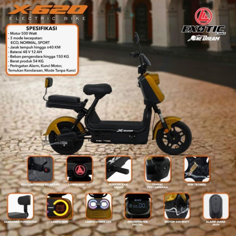 sepedah listrik tanpa dp dewasa/anak anak murah Exotic X620 Terbaru 500 Watt - Garansi Resmi