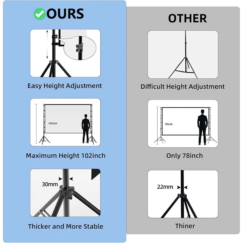 Layar Proyektor Dengan Stand VEIDADZ Putih Bebas Kerut Sudut Pandang 160° Layar Dua Sisi 120inci 16:9 4K HD Portabel Layar Proyeksi Film