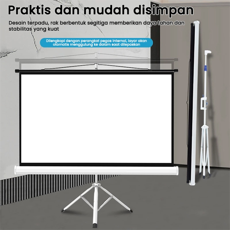 Layar Proyektor 4:3 Layar proyektor gantung dan berdiri di lantai 72 inch