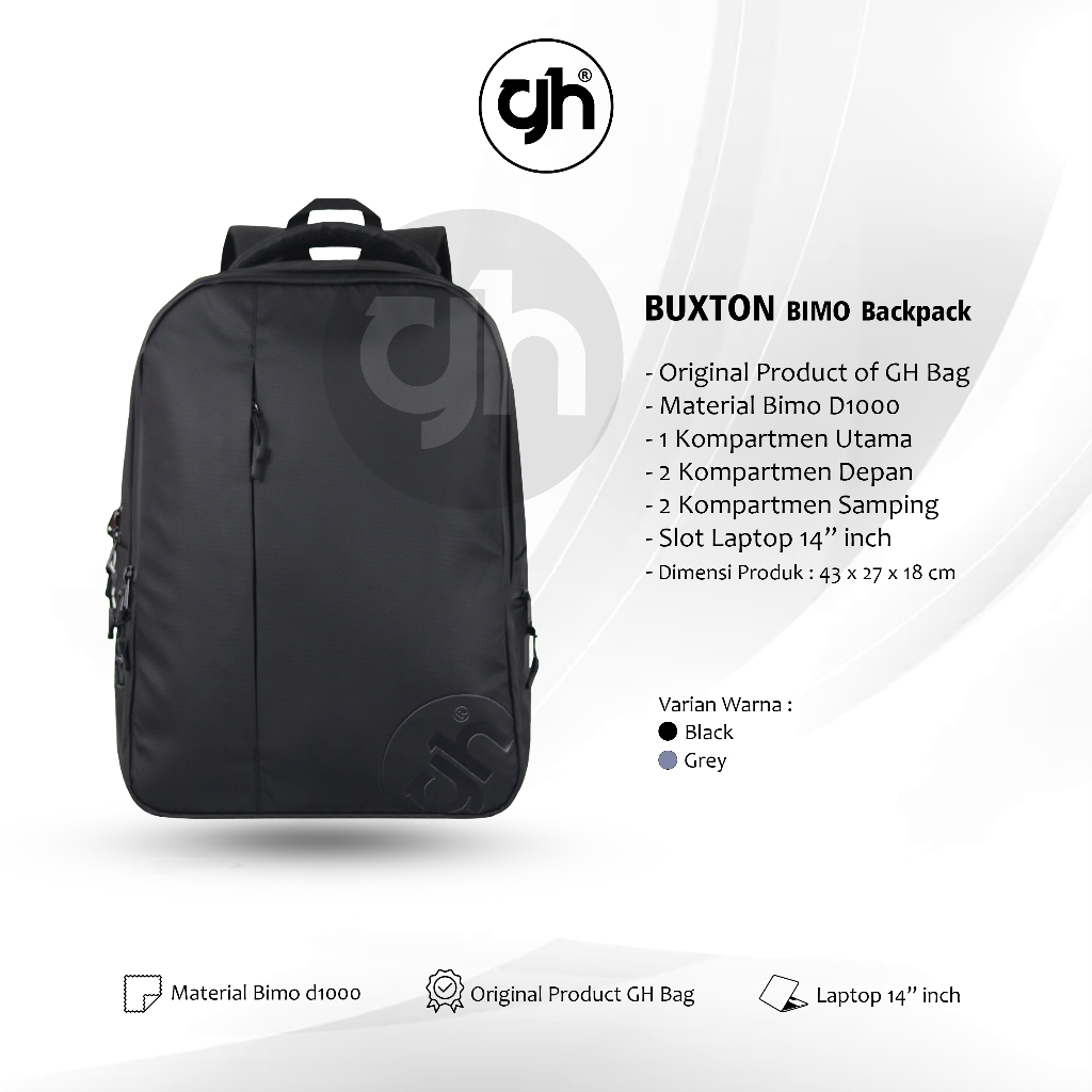 GH-Bag BUXTON Tas Sekolah Kuliah Laptop 14" Inch Tas Kerja Waterproof Anti Air