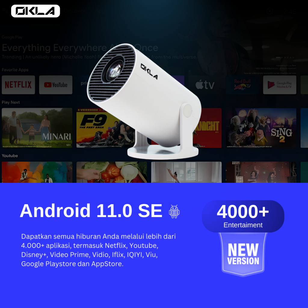 OKLA K77 SMART PROYEKTOR - GOOGLE STORE - PROJECTOR ANDROID 11 WIFI HDMI USB - 200 ANSI LUMENS 4K