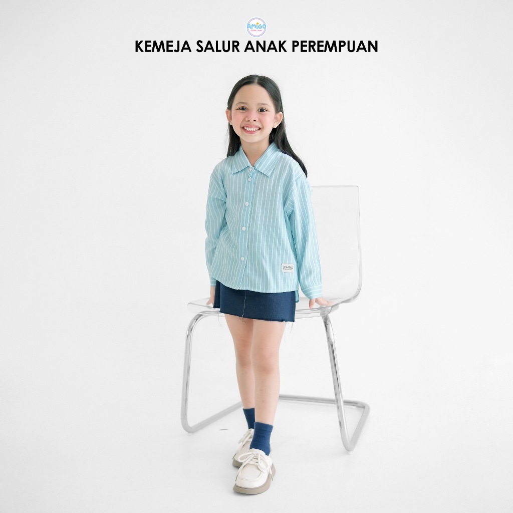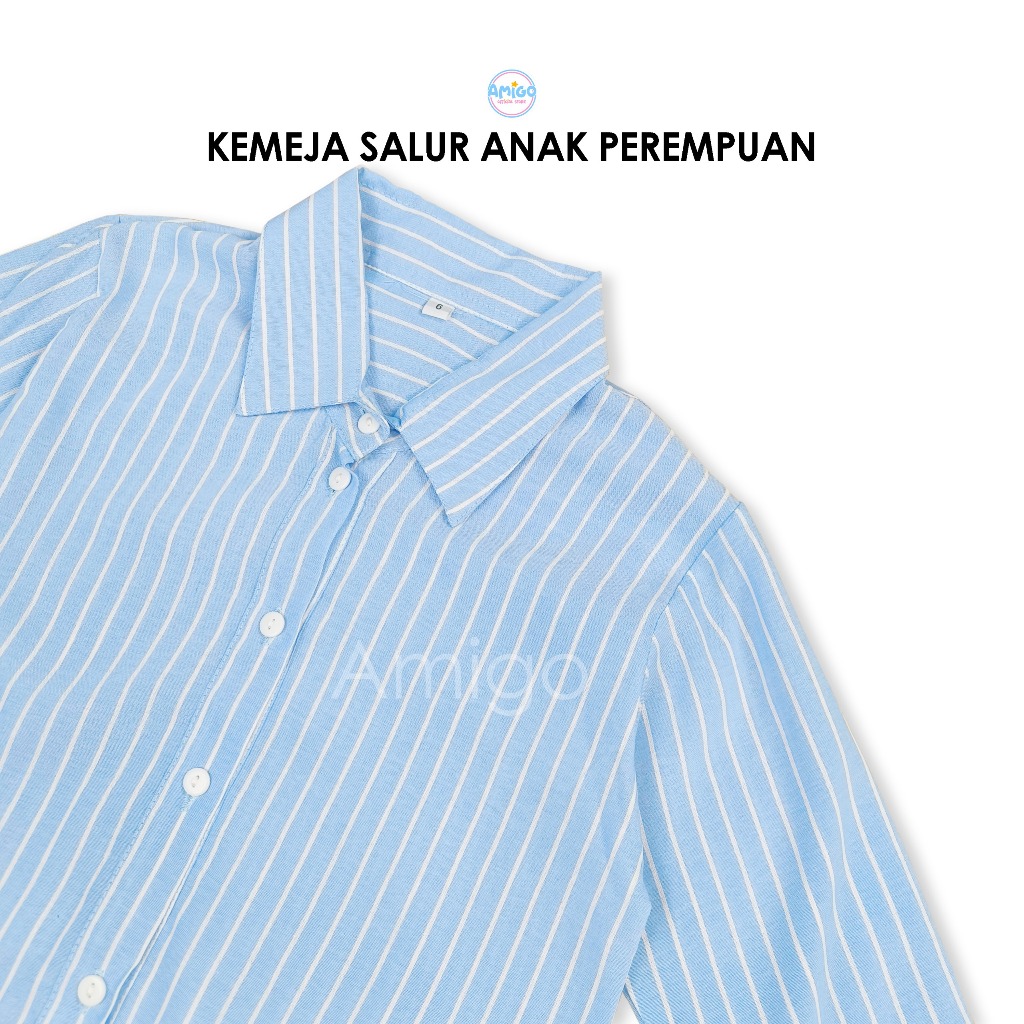 Kemeja Oversize Salur Striped Anak Perempuan Drama Korea 2-12 Tahun Amigo