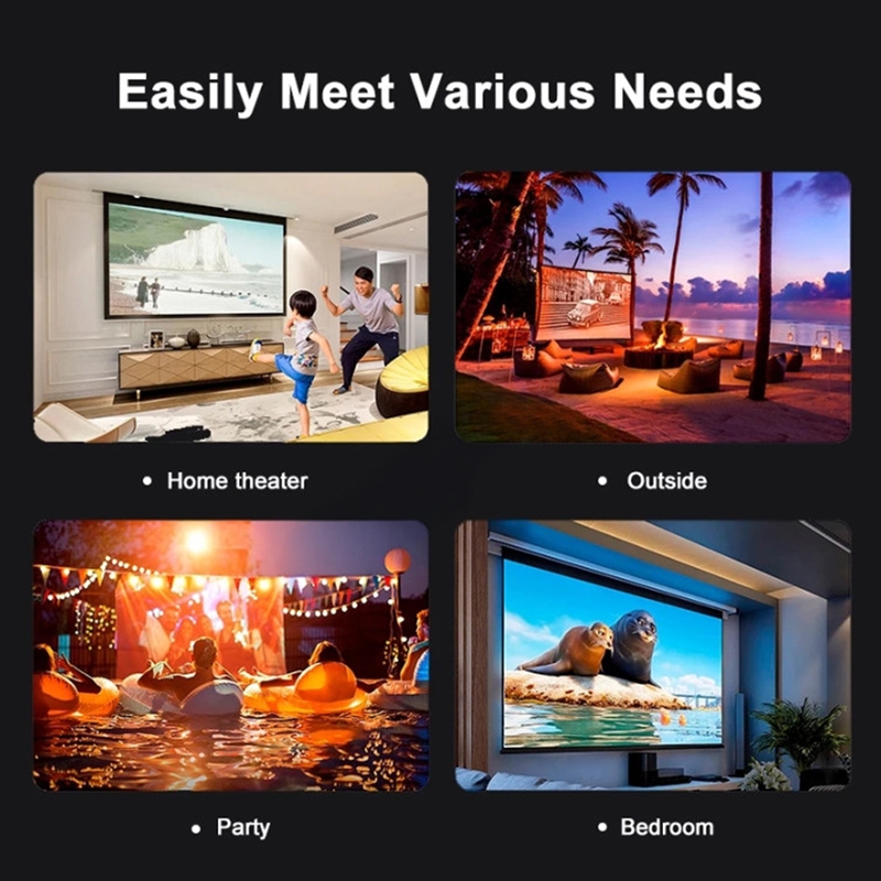 Smart Proyektor Portable Led Android 13.0 Bluetooth Proyektor 2.4+5G Wifi 6 Portabel Minimalis - Full HD 1080P - 9000 Lumen - Auto Keystone