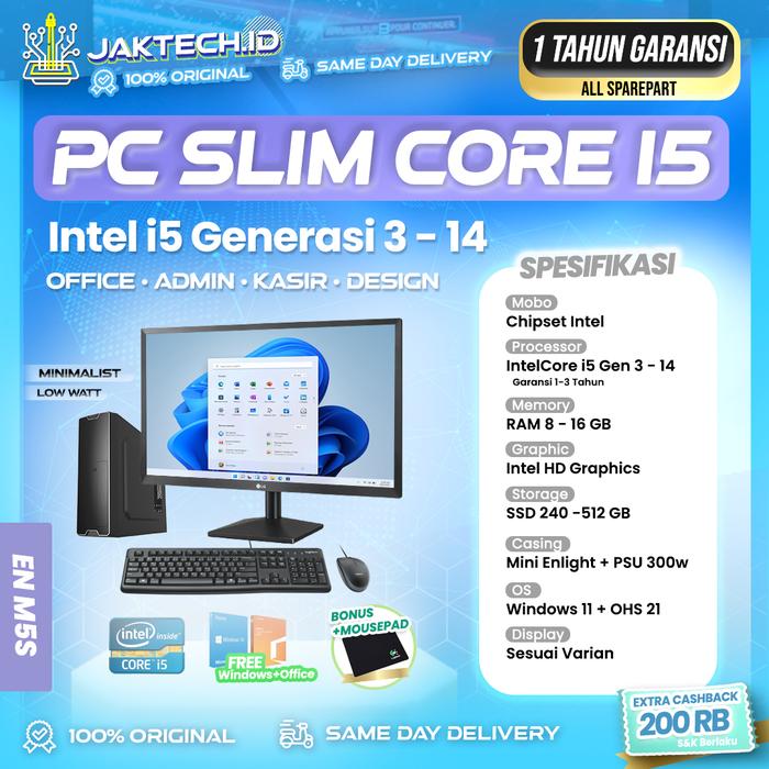 Mini Pc Rakitan Intel Core I5 / Ram 8Gb / Ssd / Layar 22" / Slim - I3 Gen 2 [M3B], Pc Only