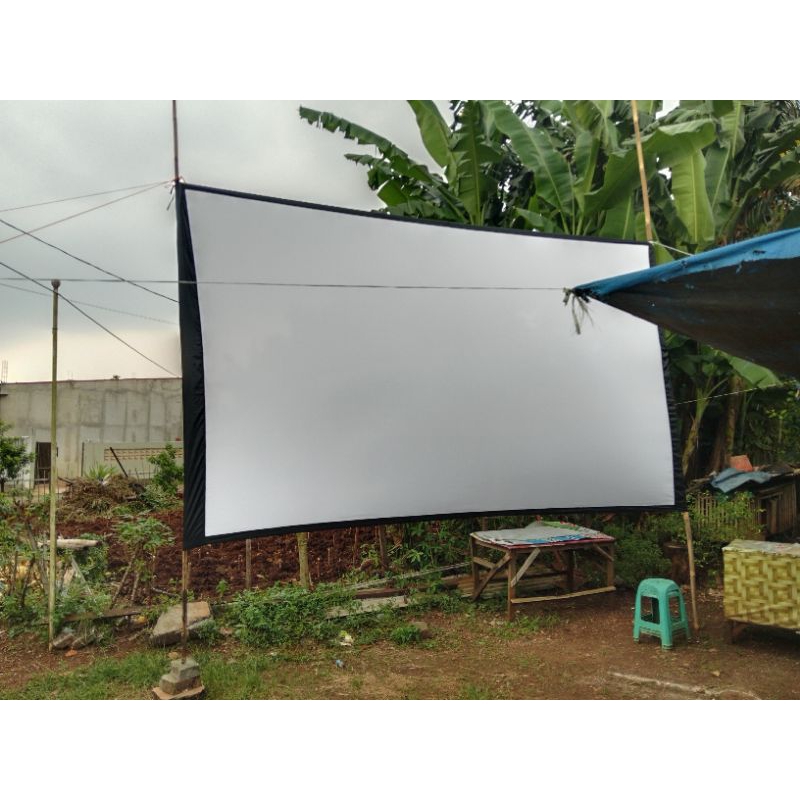 kain layar proyektor ukuran 2,5 x 4 meter model kolong bambu