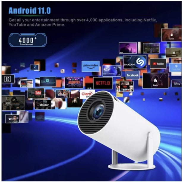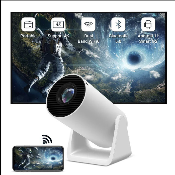 SMARTCOM Home Theater Proyektor Android 11.0 HY300 Smart Projector Dual Band 10000 Lumens Wifi Bluetooth Ultra HD 4K 720P