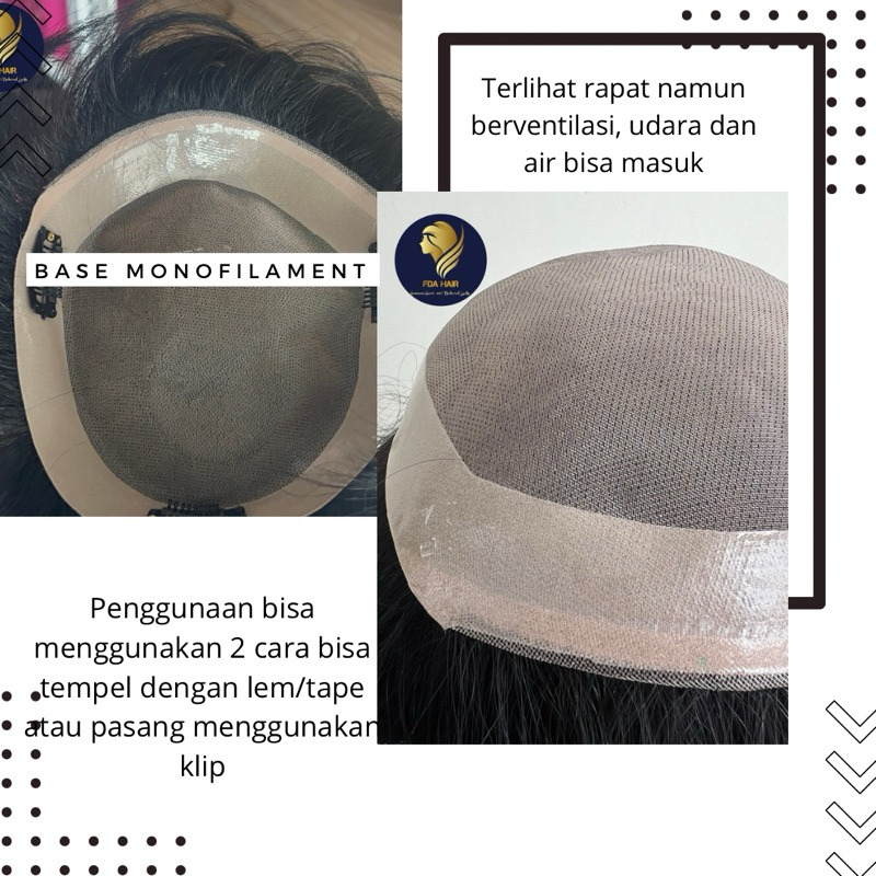 Hair Toupee Monofilament Premium Rambut Asli Natural