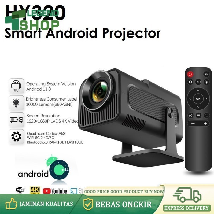 Proyektor HY320 Android 11.0 1080p 10000 Lumens WiFi 6 Bluetooth 5 Smart Proyektor HD 4K HDMI 1080P Native Projector LCD TV