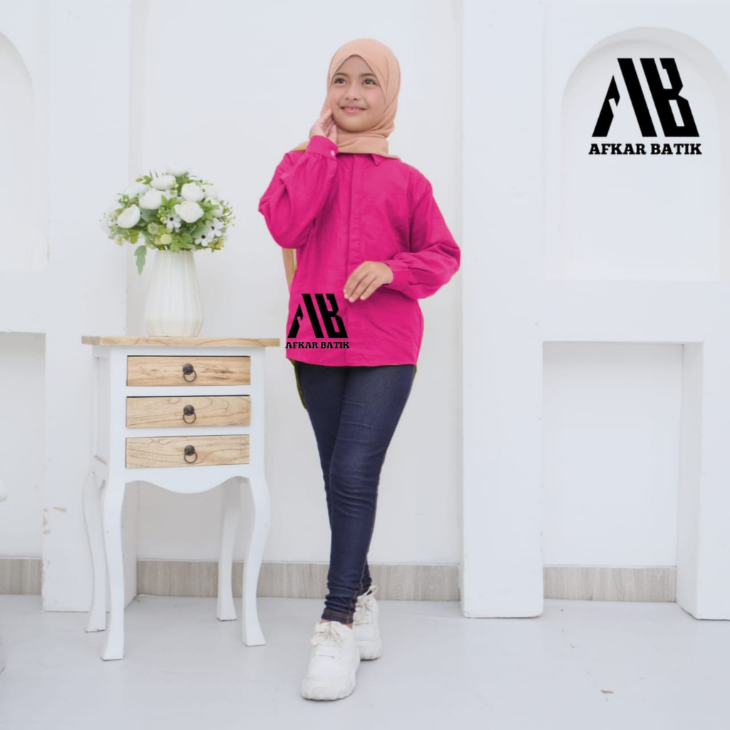 Rika Top Blues Anak Kemeja Hanna Oversize Anak Perempuan Usia 6-11 Tahun Nyaman Dan Adem