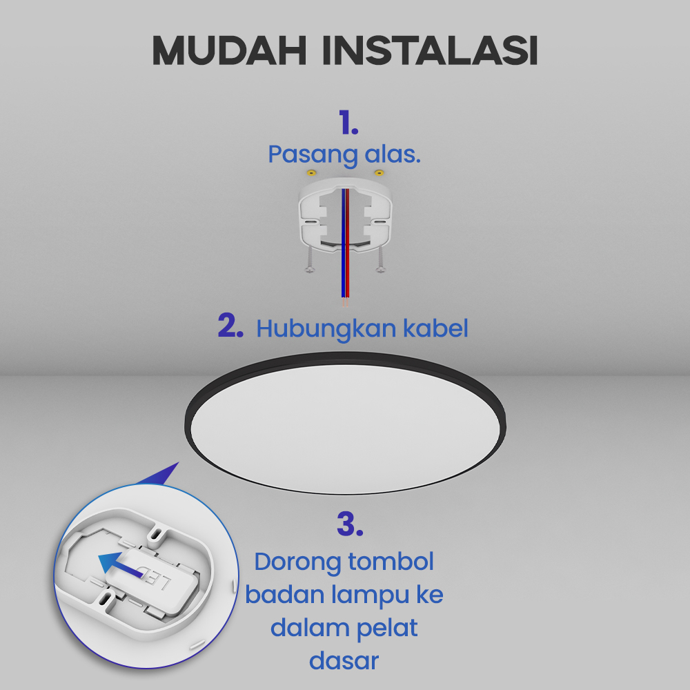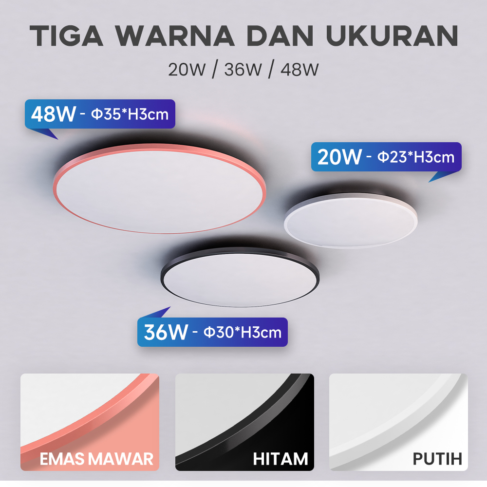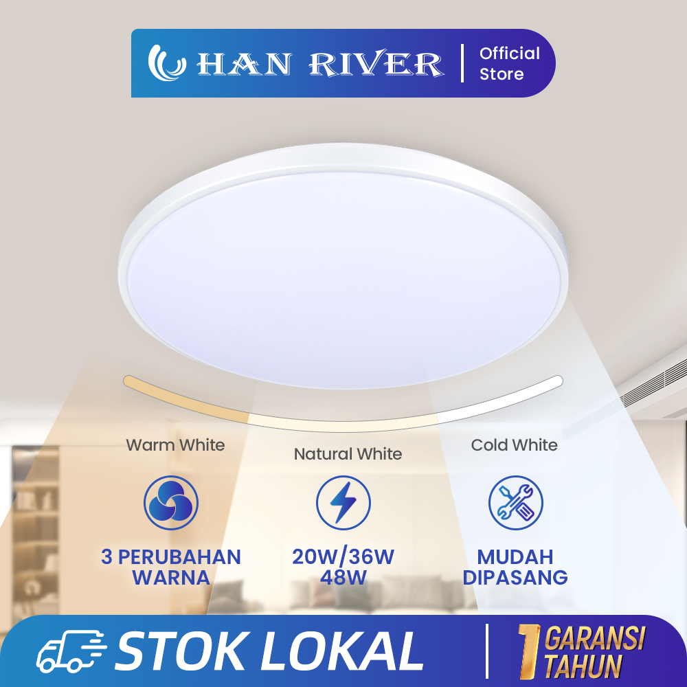 HAN RIVER 20W Lampu Plafon Minimalis 3 Warna/Putih Lampu LED Kamar Lampu Plafon Rumah