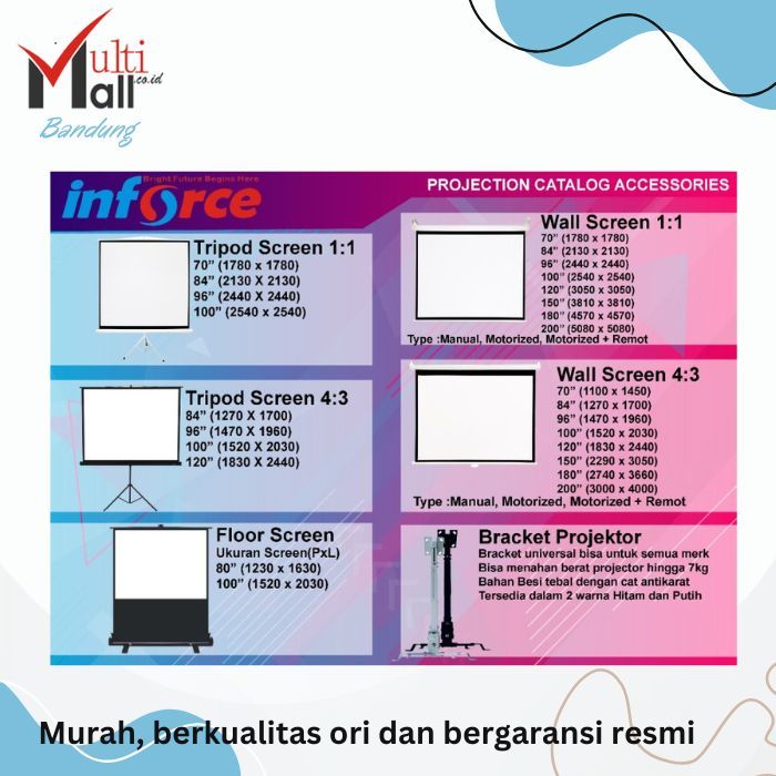SCREEN TRIPOD PROJECTOR / LAYAR SCREEN 70" inch (1780X1780) 1:1