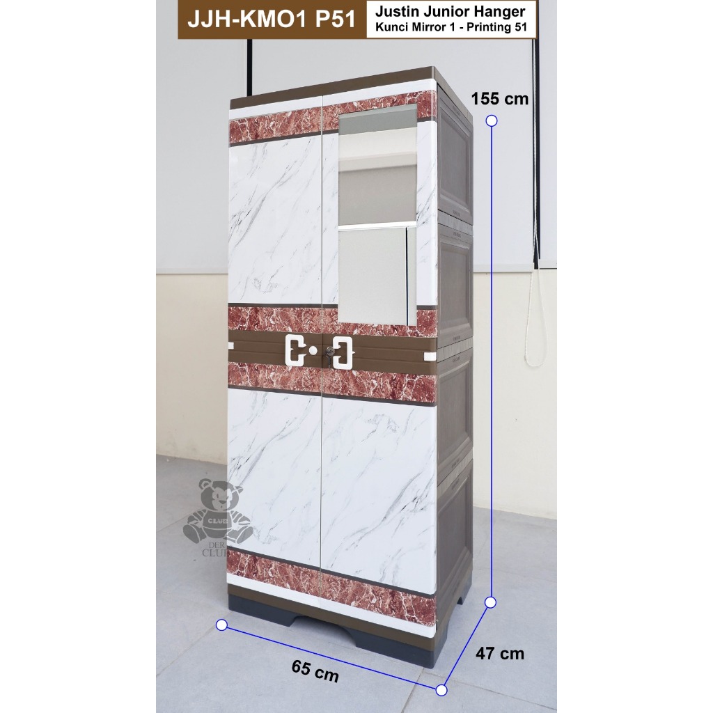 Lemari Baju Plastik Justin Junior Hanger Gantung Mirror Kaca Cermin CLUB RAK FULL KUNCI JJH MO1