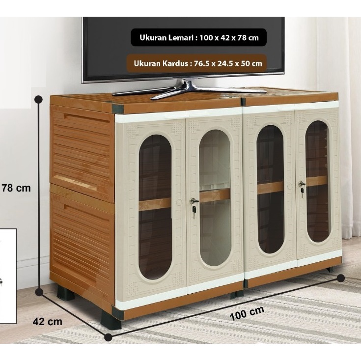Murah Lemari Pakaian Baju Plastik triple club flip 2 susun Rak TV Rotan Buffet TV 6 kotak