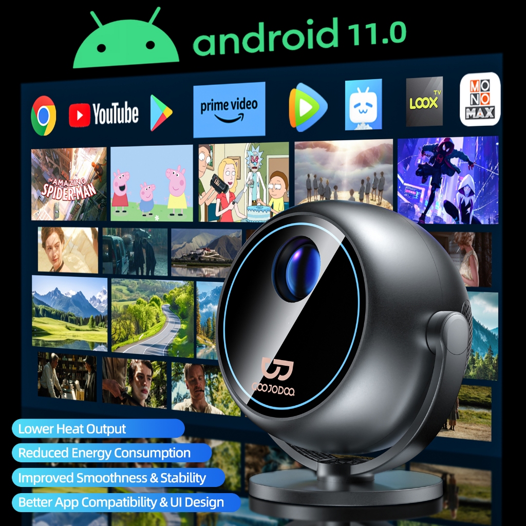 GOOJODOQ Portable Mini Proyektor Full HD 1080P 180 ANSI 360° Free Rotation Bluetooth 5.0 Auto Focus