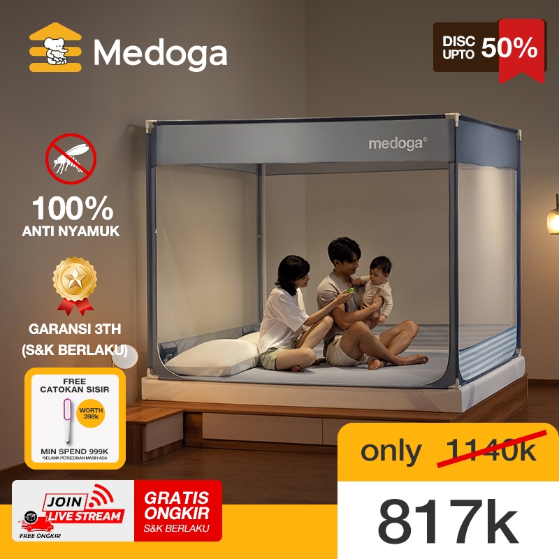 Medoga Kelambu Anti Jatuh Anti Nyamuk Tenda Bayi & Dewasa Jumbo Kotak 160x200 180x200 200x200