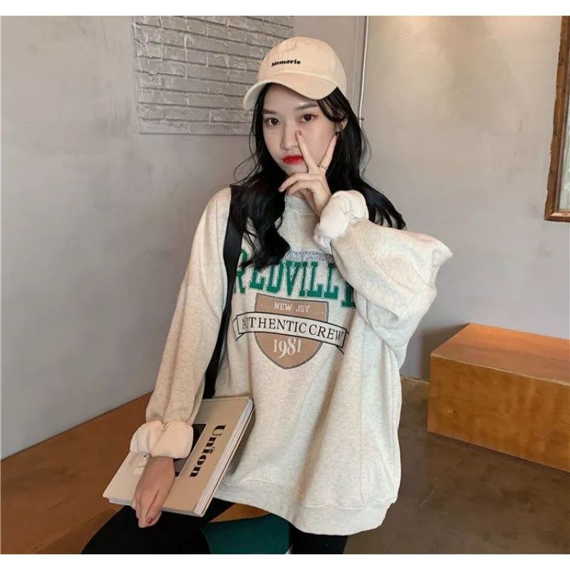 Sweater Wanita Oversize - Redville Sweater Crewneck Wanita Size L.XL.XXL Size Jumbo - Fleece tebal