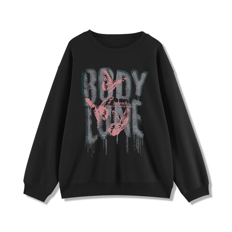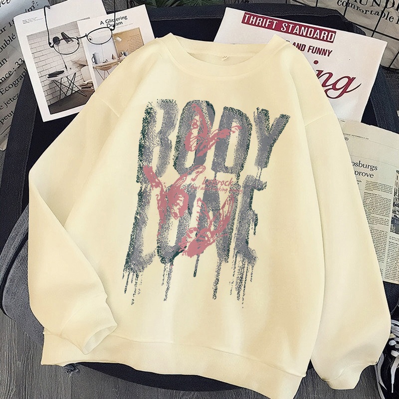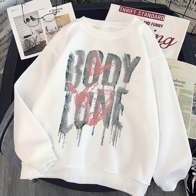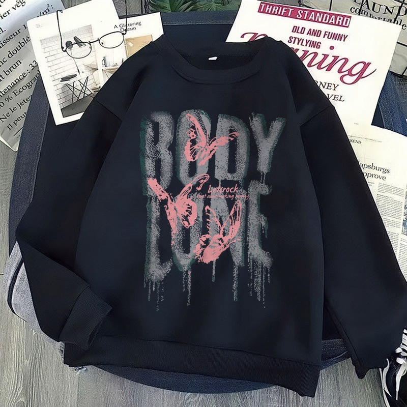 [] Fastfash Crewneck Sweater pria dan wanita Lengan Panjang Lengan Panjang Oversize Kupu-kupu retro BODY LUNE Switer cre
